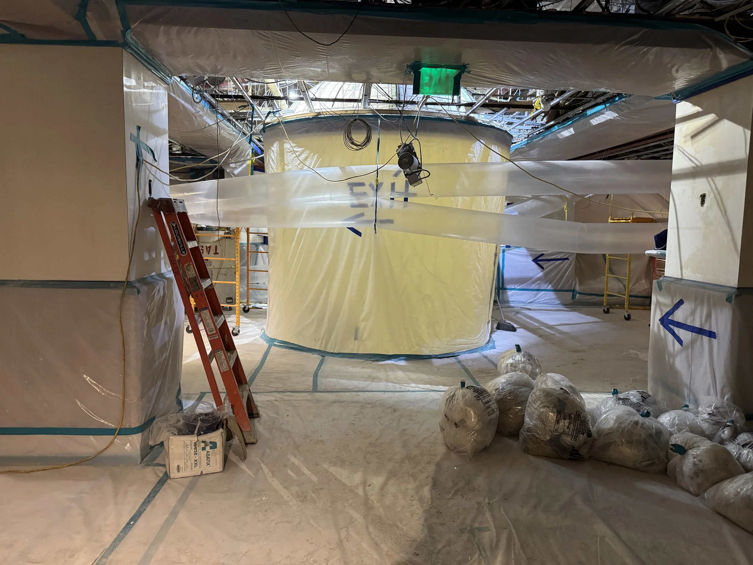 The Texas-themed bar at the Driskill under renovation and wrapped in plastic.