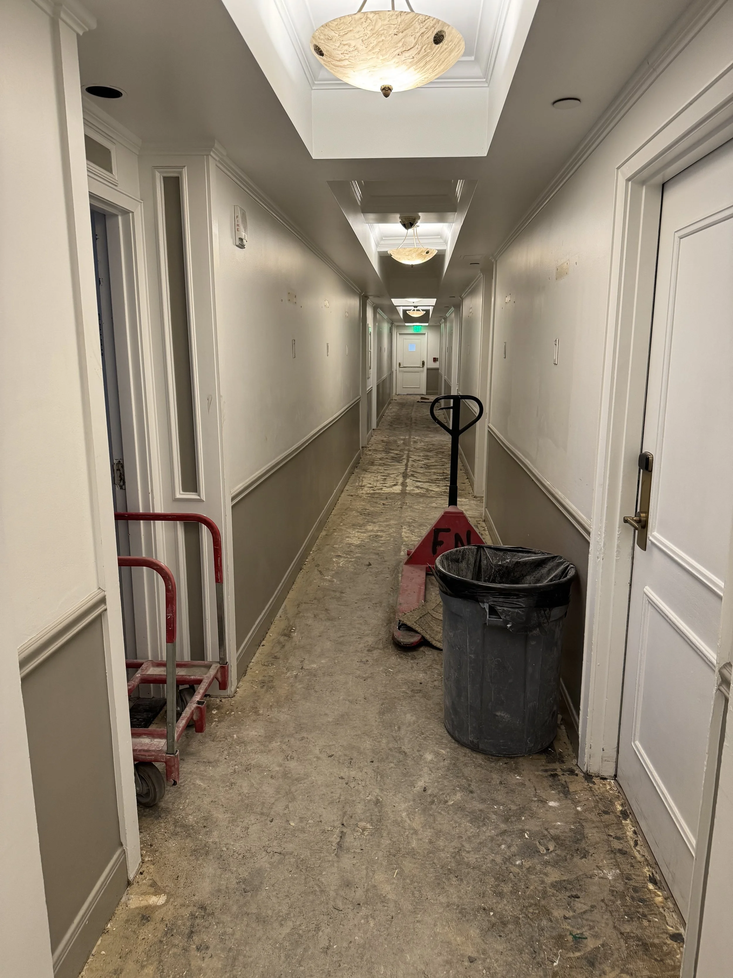 Like Jaxson and Holiday, I ventured inside to search for this bungalow and found myself at the top of the tower, only to discover that the rooftop access was locked. By then, I’d found the gold-plated elevator and was quite surprised to find it working. That is, it worked until it reached the second floor, where I found the opening blocked by a large sheet of thick, opaque plastic. I hit button three, and the doors closed, but the elevator didn’t move. I hit another button, and another, and another, and the elevator remained as still as a sealed sarcophagus. In desperation, I punched button two again, and the doors shot open. Knowing it was either go through all that plastic or spend the night in a spooky old elevator in a spooky old tower that was under renovation, I broke through and found myself in a strange room I couldn’t immediately recognize. Thick opaque plastic covered the walls and ceiling and floor. It was like being on the set of an old X-Files episode. Or maybe a “kill room” on Dexter? On a large yellow cylinder wrapped in plastic, someone had written the word “EXIT" with an arrow pointing to the left, so that’s where I headed. I ran into a large wall of plastic with a small crawl space at the bottom. I dropped to my knees and pushed through the sheet of plastic only to find another, and three or four more after that. Finally, on the other side, I stood and realized I was in the old Texas-themed bar. Before me was the actual iconic wooden bar with its stars. And to my right was a door to the street. You didn’t have to ask me twice to bust through that door to the outside. Fresh air never felt so good.
